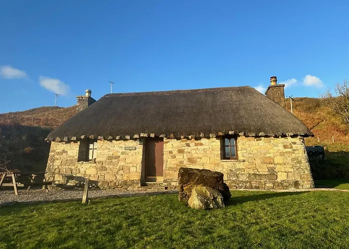 To enjoy your vacation in Elgol, stay at the spacious 66 m^2 Tigh Mairi At Mary'S Thatched Cottages, which is 2.3 km from Elgol Beach and approximately a 10-minute drive from Loch Slapin. Also, there are many sports opportunities, such as hiking, horseback riding, and cycling.